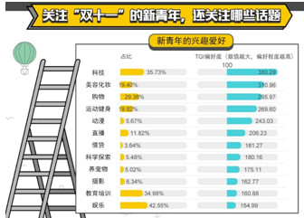 最近,QQ廣告發布了【95后新青年“雙十一“社交洞察報告】,挖掘出了一些令人感到意外的結果,例如在這群95后新青年最關注的帶貨明星除了吳亦凡、張杰”外,劉濤和吳京也榜上有名;討論最多的品牌類型是“消費電子”,而且聲量是其它類型的總和;關注最多的生活服務類型是配送類,TGI指數遠高于“求職招聘”等學生黨的剛需……
