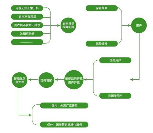 國美管家基于家電銷售信息數據的跟蹤,將通過智能化手段區別家電保內和保外維修,運用技術手段實現家電售后服務接入互聯網服務場景,加之標準化服務管控過程,顧客通過國美管家平臺提交維修訂單,平臺自主識別保內保外訂單,將保內訂單自動轉派至廠家售后,保外訂單轉派國美管家售后,讓消費者省心的同時還能享受到專業、標準化的服務水平及最佳的解決方案。