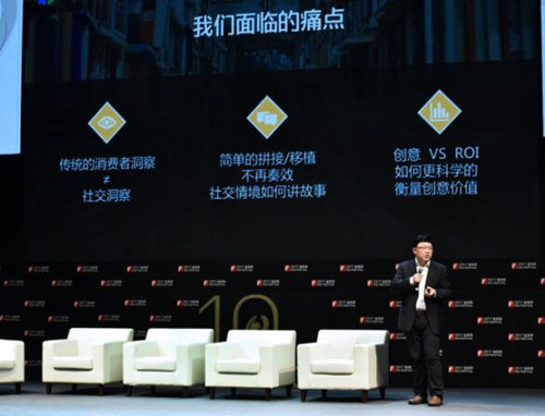 10月16日,在第十屆金投賞國際創意節上,騰訊社交廣告副總經理張敏毅發表了《創于數、見未來——社交 創意 死活題》的主題演講。