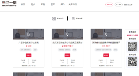 (圖為三點(diǎn)一刻營(yíng)銷需求頁(yè)面)