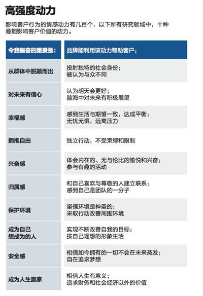 在300多種影響客戶行為的情感動力中,以下10種是最能影響客戶價值的動力: