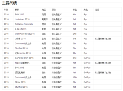 他是世界上最有名的游戲玩家之一,《街頭霸王》歷史上的傳奇人物,被格斗游戲界稱為The Beast(野獸)。他曾獲得包括六次Evolution稱號在內的各大國際賽事冠軍,堪稱“最成功的世界級街霸玩家”。