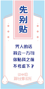 大家都知道吧,甜小嗨解憂事務的使命是什么?甜小嗨解憂事務所自開張以來,便致力于為小伙伴兒們解決不同的煩惱,看到大家被啪啪啪的一通貼,我們怎么能坐視不理呢?甜小嗨的主張就是生活中酸甜苦咸都是不請自來的,只有甜是自找的,被貼條也別方,所長幫你尋開心!