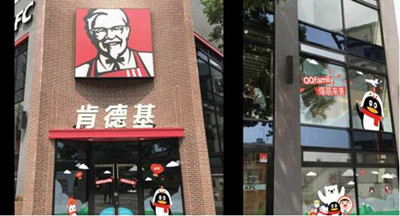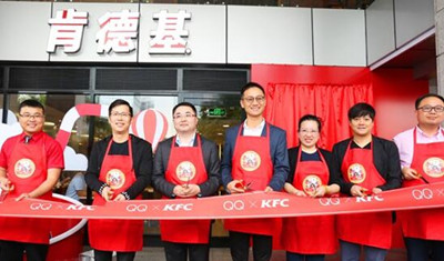 ??緊接著,全國第一家肯德基“QQ主題店”在深圳正式開業,QQ與KFC的合作也正式落地線下。主題店的柜臺、桌椅、內部裝飾上滿是QQfamily和QQ音樂、QQ游戲的圖案,QQ的熱聊、部落、吃喝玩樂等社交功能也與KFC實體店結合, 充滿年輕活力,開業當天門店爆滿,據統計客流量高達2億次。
