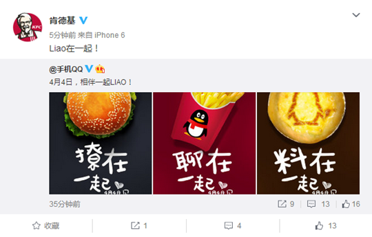 近年來(lái),快消品牌與互聯(lián)網(wǎng)品牌合作并不少見(jiàn),但是很多都停留在品牌商業(yè)合作上的淺嘗輒止,不知道這次QQ與KFC合作是否會(huì)有讓我們驚喜的產(chǎn)品,是否會(huì)有不僅僅在品牌層面的更深層次的合作,看來(lái)只有等待4月4日揭曉了。