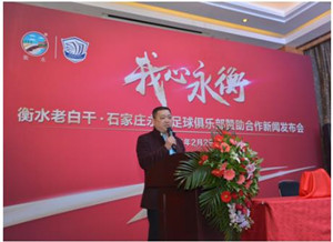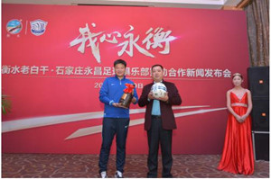 石家莊永昌足球俱樂部常務副總經理兼技術總監李金羽在講話中也提到:2014年俱樂部正式更名為石家莊永昌足球俱樂部,當年以中甲聯賽亞軍的身份獲得年中國足球超級聯賽的參賽資格,成為河北足球史上首支登上中國頂級職業聯賽的球隊,是河北的驕傲。在俱樂部的升班元年,球隊取得了不錯的戰績,吸引了河北乃至全國企業的青睞。衡水老白干是河北白酒的代名詞,同樣也是河北的驕傲,我們與衡水老白干攜手是因為我們有著共同的發展目標,要做各自行業里河北領域的標桿,并在全國領域占得一席之地。