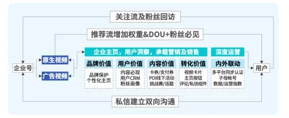 在轉化價值層面,抖音藍V提供視頻入口、主頁入口、互動入口等三大轉化路徑,實現“種草-轉化”的閉環結構,促進決策提升。