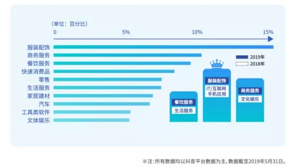抖音企業藍V賬號經過一年的迅速發展,賬號整體分布呈現三大特點。