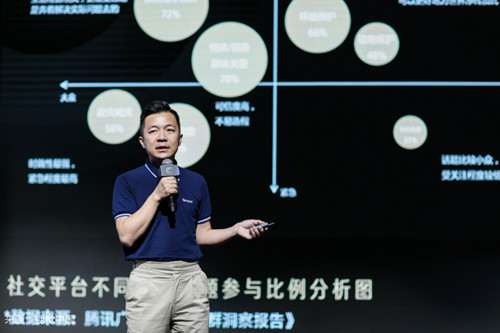 騰訊廣告高級品牌公關總監楊維佳在2019金瞳內容盛典現場分享(圖片來源:視覺中國)