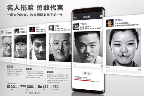 由Cheil團隊和騰訊廣告共同制作,關注唇腭裂兒童的公益廣告作品《名人捐臉 勇敢代言》獲創意組公益類銅獎。作品邀請名人在社交媒體曬出自己“唇腭裂”照片,將唇腭裂孩子的壓力,直觀地呈現在每個人面前,讓更多普通公眾直接感受到唇腭裂孩子們的境遇。活動在微信和QQ平臺產生了巨大回響,獲得超過5300萬次曝光,超56000人捐款,幫助160個貧困家庭的唇腭裂孩子進行面部修復手術。用一厘米的改變,幫助孩子們重獲公平人生。