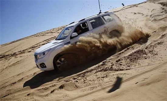 此外在應對烏蘭布統大起大落的路況時,一套完善的底盤系統也是必不可少的。哈弗H9有一套非常專業的全地形路況控制系統,這套系統經過精準調校,包含了沙地、雪地、泥地等多種路況模式,能夠對車輛的動力驅動與底盤電子等六大電控系統進行相對應的調節以應對各種復雜的路況。而在操作起來只要通過中央控制區的控制旋鈕便可以實現切換,大大降低了越野出行的操作門檻。所以盡管烏蘭布統的路況復雜多變,但在行駛于這里的時候,并不會感覺到有多么的困難。