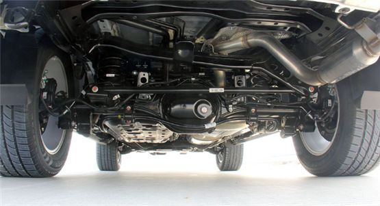 哈弗H9采用了非承載式車身結構,比承載式車身結構剛性更強。懸架為雙叉臂式前懸架+多連桿非獨立后懸架,是最為常見的硬派越野SUV底盤配置。在北京到老掌溝的路上,有200多公里的高速+省道,哈弗H9雙叉臂式前懸架可以提升車輛整體的操控性和舒適性,降低旅途疲勞感。否則到了老掌溝,人都筋疲力盡了,也就沒心情玩了。