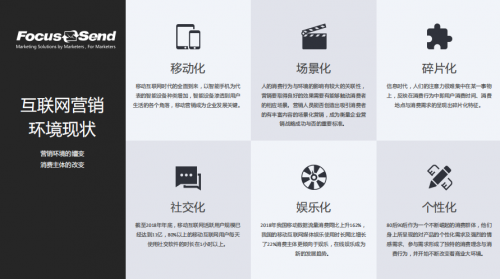 1、2018年,互聯網營銷環境與消費主體均發生較大變化,互聯網營銷環境轉向移動化、場景化、碎片化趨勢,消費主體逐漸顯現出社交化、娛樂化、個性化特征,企業營銷面臨著質與量的雙重考驗,整體營銷策略亟待升級,隨之而來,以“內容+“形式整合的新型營銷策略備受企業青睞。