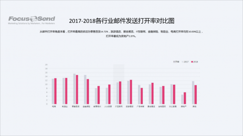 2、2018郵件營銷國內外對比,EDM全行業發送排名,各行業郵件打開率、點擊率、退訂率等多維數據對比分析。