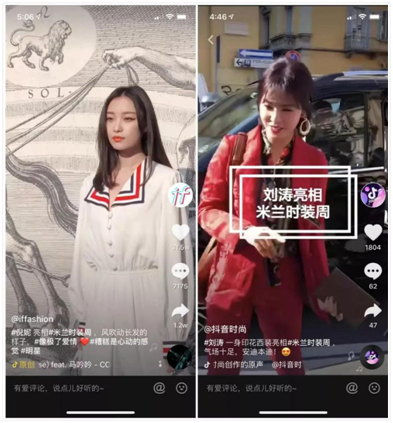 既然是看時裝周,重頭戲肯定是看走秀。而在時裝周期間,像抖音的官方賬號@抖音時尚、@快閃季以及MCN機構賬號@時尚芭莎 、@iffasion 等賬號,發布了海量時裝周現場走秀的短視頻和時尚資訊,讓廣大網友用最便捷的方式,近距離感受國際時裝周。