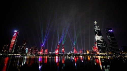 (圖注:深圳上演2019籃球世界杯燈光秀)
