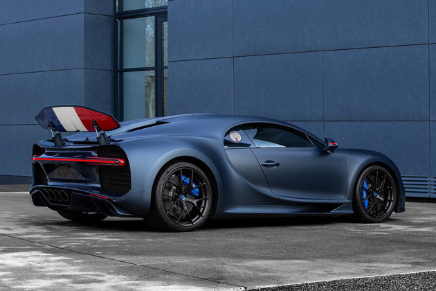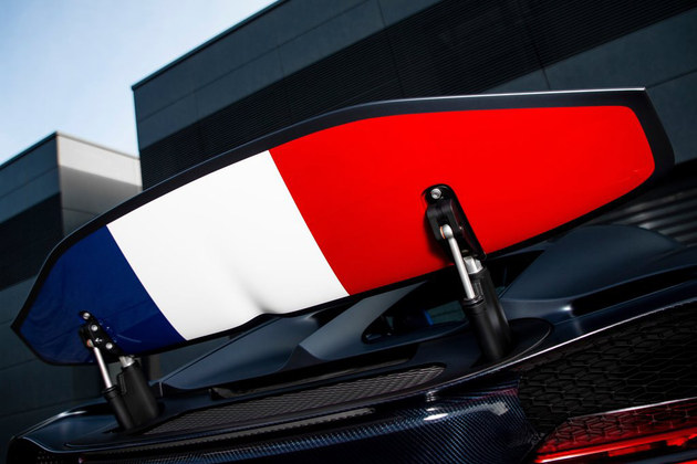 外觀方面,Chiron Sport 110 ans Bugatti特別版車型采用了源自于法國國旗藍(lán)色的Le Bleu-Blanc-Rouge亞光涂裝,外后視鏡以及后擾流板中都融入了法國國旗元素。新車采用了亞光黑色合金輪圈,配合亮藍(lán)色的剎車卡鉗。油箱蓋為鋁制材料,采用磨砂和拋光處理,同樣融入專屬的標(biāo)識和法國國旗元素。