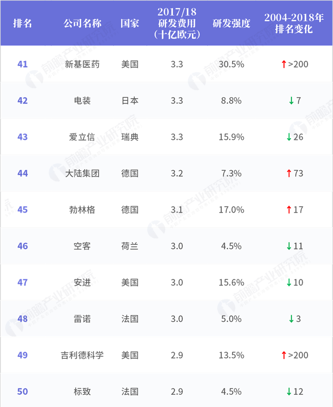 2018年全球企業研發投入排行榜(三)