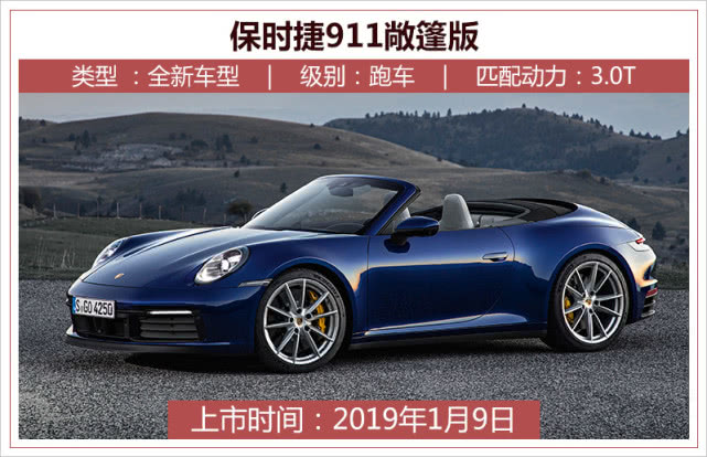 全新911敞篷系列目前提供后輪驅動的Carrera S與四輪驅動的Carrera 4S兩種車型選擇,兩款車型均搭載3.0升水平對置六缸渦輪增壓發動機,最大功率331千瓦,峰值扭矩為530牛米,與發動機匹配的是新開發的8速雙離合變速箱。此外,還采用了全新布局的渦輪增壓器與增壓空氣冷卻系統。