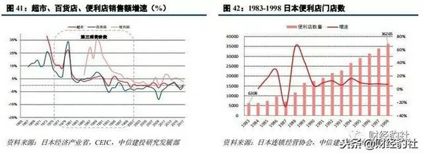 ??百貨/商超增速放緩、便利店迅速擴張,便利店主流消費場景,百貨轉型為一站式購物中心。1974 年日本第一家便利店誕生—Seven-Eleven豐州店,目前全世界三大便利店(全家、7-11、羅森)均為日資公司。