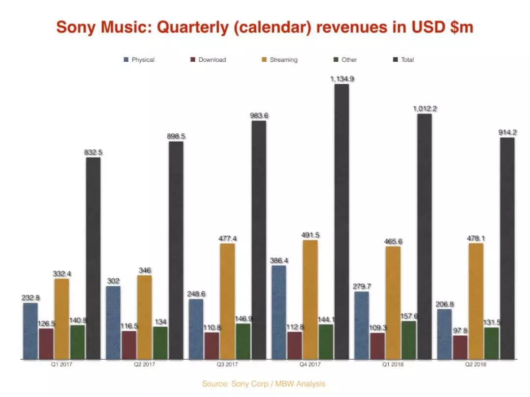 從上圖可以看出,在2018年Q2整體收入下滑的情況下,流媒體依舊實(shí)現(xiàn)了增長(zhǎng)。