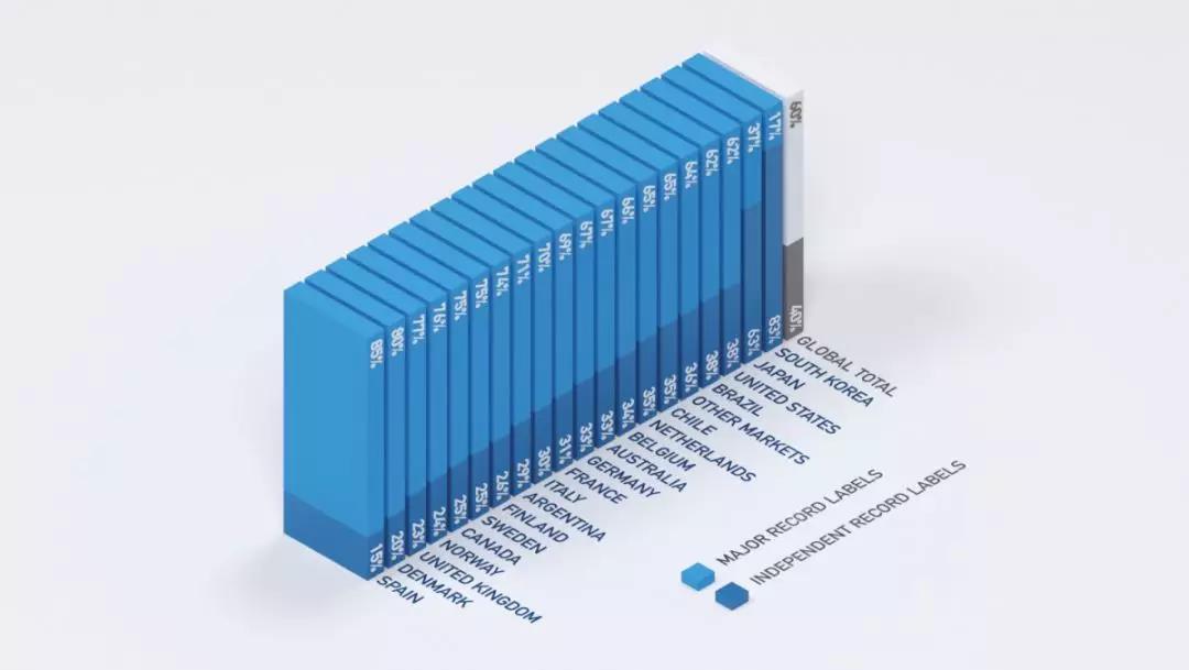 根據(jù)一份最新報(bào)告顯示,日本的主流唱片公司仍占據(jù)日本市場(chǎng)63%的份額,位列全球排名第二,而主流唱片公司(三大)在全球音樂市場(chǎng)的份額為40%,版權(quán)優(yōu)勢(shì)明顯。