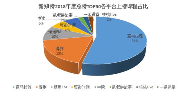 新知榜在《2018-2019內(nèi)容付費(fèi)行業(yè)白皮書》中發(fā)布了知識(shí)付費(fèi)年度總榜TOP50榜單,其中僅喜馬拉雅一家就上榜27個(gè)課程,占比超過一半以上。