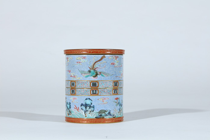 “清乾隆 御制洋彩 ‘江山一統’八卦玲瓏旋轉筆筒”