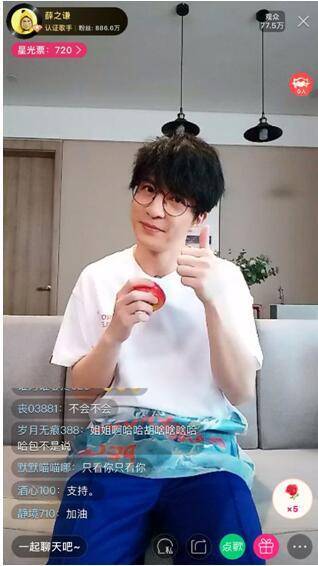 薛之謙酷狗直播與用戶粉絲深度互動(dòng),觀看峰值一度達(dá)到130W+