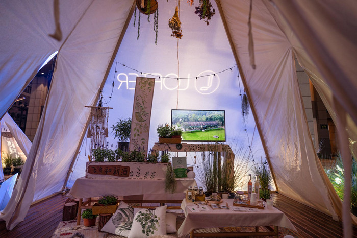 據悉,此次展覽基于當下一部分年輕人在焦慮下日漸麻木的生存現狀進行洞察,以“感官治愈”為切入點,以“喚醒”為主題,設置了3頂治愈帳篷和1個手作市集,分別是:從嗅覺和味覺設定的“浪漫喚醒集”,從聽覺設定的“音符治愈集”,從視覺和觸覺設定的“自然生長集”以及融合了”五覺“感官體驗的漫生活手作集。每個治愈帳篷都從不同的感官切入,以“視覺、聽覺、 嗅覺、觸覺、味覺”全方位喚醒青年對美和浪漫的敏感力。