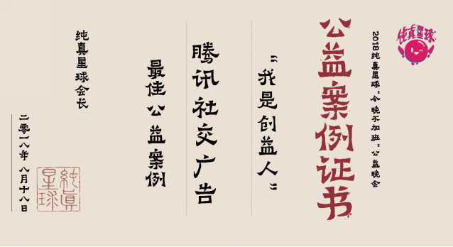 近日,數百位廣告營銷界人士齊聚2018純真星球“今晚不加班”公益晚會。晚會上,騰訊社交廣告“我是創益人”公益廣告大賽獲得由純真星球(聯勸-中國廣告公益專項基金)頒發的最佳公益案例獎項。騰訊社交廣告表示將持續推動創意能量與公益力量形成合力,通過提供公益洞察、社交創新能力、科技支持等全方位助力,溫暖純真星球上的每一顆愛心。