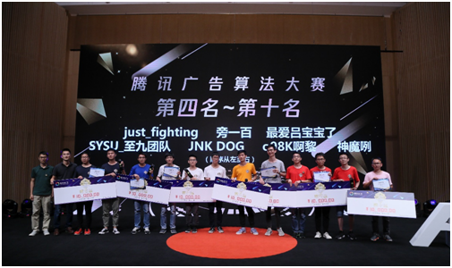 本屆比賽的第四到第十名的團隊同樣貢獻了精彩的算法演繹表現,并獲得1萬元獎勵。他們是:“just-fighting”、“旁一百”、“最愛呂寶寶了”、“SYSU_至九團隊”、“JNK DOG”、“o98K啊黎”、“神魔咧”團隊。