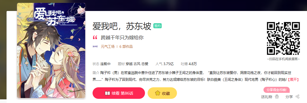 暑期過去一半,輕幻想題材漫畫《愛我吧,蘇東坡》成為大熱門,創(chuàng)下了3.7億次點(diǎn)擊量的同時(shí),更是收獲了良好的口碑。目前正在網(wǎng)易漫畫獨(dú)家連載中,每周三、六更新兩期,現(xiàn)已更新至122話。