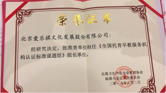 會議上,愛樂祺被全國衛生產業企業管理協會標準與認證專業委員會評選為——《全國托育早教服務機構認證標準課題組》組長單位,這是相關部門對愛樂祺在托育早教領域工作的充分肯定。
