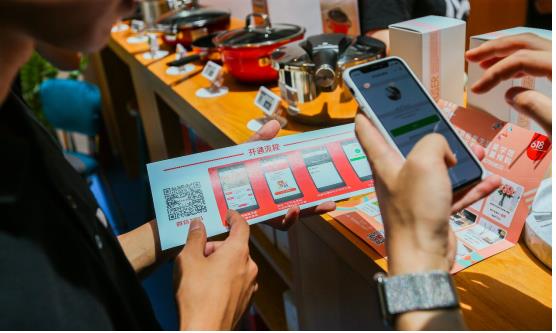 顧客只需要通過京東會員碼頻道找到快閃店,并領取門店券即可開啟暢快的買買買之旅。空間展區的大件商品只需在展區掃碼到線上下單,購物區的小件則在 POS 收銀處掃商品碼后,再掃會員碼識別用戶身份和核銷權益,完成支付,心水之物便可輕松帶回家。