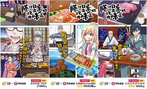 獲得銅獎(jiǎng)的作品是網(wǎng)易漫畫(huà)與飛豬的跨界合作“膳待自己,吃出霓虹的味道”。這場(chǎng)美食之旅把二次元文化,以及知名國(guó)漫IP通過(guò)傳統(tǒng)旅行體驗(yàn)建立與年輕用戶群體的情感聯(lián)系。網(wǎng)易漫畫(huà)攜手獨(dú)家簽約作品《赤鐵之心》、《控妹狂戰(zhàn)記》、《嗜謊之神》等六部漫畫(huà)作品,通過(guò)同人海報(bào)、漫畫(huà)番外、看漫畫(huà)找彩蛋等線上互動(dòng),引導(dǎo)年輕用戶在二次元世界里做美食旅行。同時(shí),兩位扮成網(wǎng)易漫畫(huà)虛擬偶像鹿娘的二次元coser,與知名漫畫(huà)家于彥舒一起體驗(yàn)飛豬安排的日本旅行路線,將線上的體驗(yàn)復(fù)制到線下,拉近與普通用戶之間的距離。