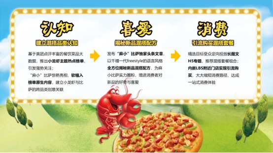 在夏季來臨之際,必勝客借勢小龍蝦旺季推出創意新品“麻辣小龍蝦比薩”,利用混搭魅力,搶奪年輕人的好奇心和注意力。必勝客選擇與美團點評合作,在匯集最多吃貨的O2O美食平臺大玩“混搭”內容營銷,促使必勝客麻小比薩套餐銷售每月超5萬單,為門店帶動約825萬元交易增量,成功拿下移動營銷類——展示類銀獎。