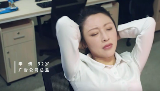 人物二:廣告公司總監(jiān) 李倩,32歲,連續(xù)加班熬夜9天,對廣告狗來說真的不算什么,可是熬夜并沒有換回客戶的認(rèn)可,得到的只是老板的批評和責(zé)罵。正像片子里說那樣,沒有人會為努力喝彩。