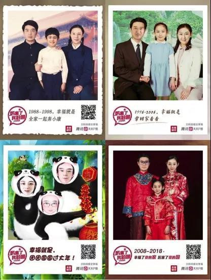 2018年恰逢改革開(kāi)放四十周年的時(shí)代節(jié)點(diǎn),在這個(gè)別具意義的春節(jié),全家福H5更仿若一臺(tái)時(shí)光機(jī)器,讓時(shí)間倒流四十年,提供各種不同時(shí)代感的主題選擇——70年代的黑白軍裝、80年代的藍(lán)色滌卡外套、90年代的現(xiàn)代洋裝、新世紀(jì)的華麗中式唐裝,還有搞笑趣味的熊貓主題……見(jiàn)證著40年中國(guó)家庭生活的巨大變遷,喚起各個(gè)年齡段家庭成員的時(shí)代回憶和美好故事,也為中國(guó)家庭創(chuàng)造了更多跨越代際、除夕圍爐的話題和溫情互動(dòng)。