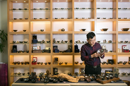 十幾年前,即便在福建,建盞也非大眾產品。當時還在做禮品生意的鄭曉涌,對工藝品有一種職業上的敏感,偶然的機會在朋友那里看到建盞,當時就著了迷。“藝術品最重要就是要有感覺,我從第一眼就喜歡上了建盞,馬上從別人手里買了幾只。”剛開始,鄭曉涌考慮把建盞當成禮品來運營,但隨著了解的深入,他覺得不應止步于此。