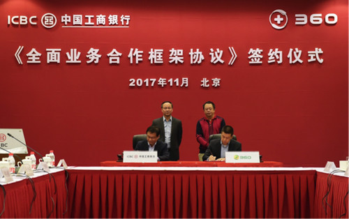 鳳凰科技訊 12月1日消息,360集團與中國工商銀行11月28日在北京舉行全面合作簽約儀式。合作內容擬涵蓋網絡安全、金融科技、智能硬件、場景共建等方面,提供更加便捷、安全的網絡金融服務。