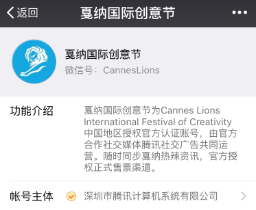 4月20日,騰訊社交廣告聯(lián)合戛納國際創(chuàng)意節(jié)在中國首次推出官方微信訂閱號 ——“戛納國際創(chuàng)意節(jié)”(微信ID:CannesLions)。