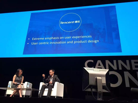 騰訊集團(tuán)副總裁林璟驊(右)與WPP中國區(qū)CEO李倩玲(左)在2016戛納現(xiàn)場對話注重用戶體驗(yàn) 成就“超級連接器”