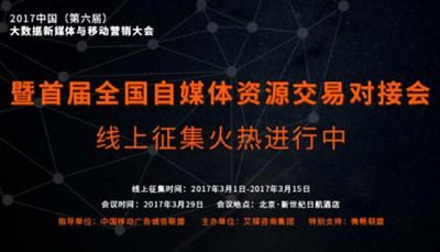 ??為解決以上營銷痛點,匯集行業內最優質的線上線下廣告、新聞媒體、微視頻,以及微博、微信等自媒體,明星網紅、大V、意見領袖(KOL) 等100萬+新媒體資源,由全球領先的移動互聯網第三方數據挖掘和分析研究機構艾媒咨詢集團主辦的2017中國(第六屆)大數據新媒體與移動營銷大會暨首屆全國自媒體資源交易對接會將于3月29日在北京新世紀日航酒店隆重舉行。
