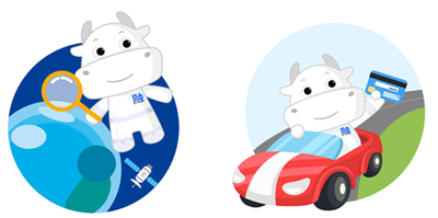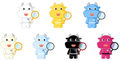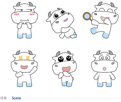 為了連接品牌和用戶之間的情感,融360還推出了吉祥物,是七只拿放大鏡的卡通牛。