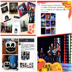 2016年初始,布丁智能機器人高調亮相百度、聯想、新浪、網易、滴滴、樂視、日知圖書、金蛋理 財等近百家公司年會,與知名企業聯動玩起年會營銷大串燒。互聯網時代品牌營銷無處不在,除了比拼新意、創意之外,roobo另辟蹊徑,看到了光各行業企業年會的潛在影響力,借助廣大企業年會的舞臺,展開自我產品營銷,讓布丁智能機器人借助如火如荼的年會,走進大眾的視線。