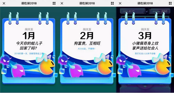 順著這種情感訴求,京東微信手Q購物在這年終之際,來了波“趣味懷舊”——《請吃掉2018》, 一款在站內推出的雙12互動闖關游戲。