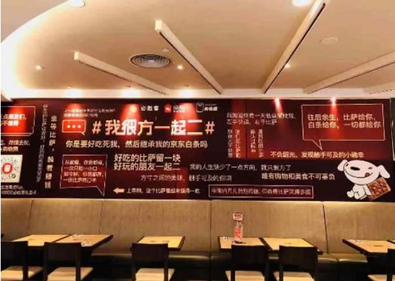 同時,圍繞這一主題,京東微信手Q購物與必勝客聯合打造了12.12有點Fun主題門店,以實際場景,聯系線上話題及線下體驗,將線下生活中活躍的年輕人吸引到線上話題的討論中。線上話題討論板塊與必勝客線下實際消費場景進行聯動,營造立體消費感受,真正做到了線上線下場景融合。