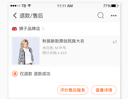 細(xì)心的用戶一定發(fā)現(xiàn)了,近日,在手機(jī)淘寶-退款/售后界面悄然新增了一個(gè)功能——評(píng)價(jià)售后服務(wù)。這意味著,消費(fèi)者可以對(duì)天貓商家的退款售后服務(wù)進(jìn)行評(píng)價(jià)。