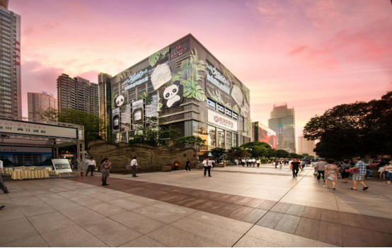 此次熊貓樂園的設計,產(chǎn)生了內(nèi)外聯(lián)動效果,外有亞馬遜叢林樂園,為消費者提供一片歡樂天地,消費者得以近距離了解品牌產(chǎn)品;內(nèi)有夜空彩虹打造的燈飾畫把商場外墻整個包圍起來,撲面而來的夏日清爽氣息,為科顏氏品牌和商場吸睛無數(shù)。